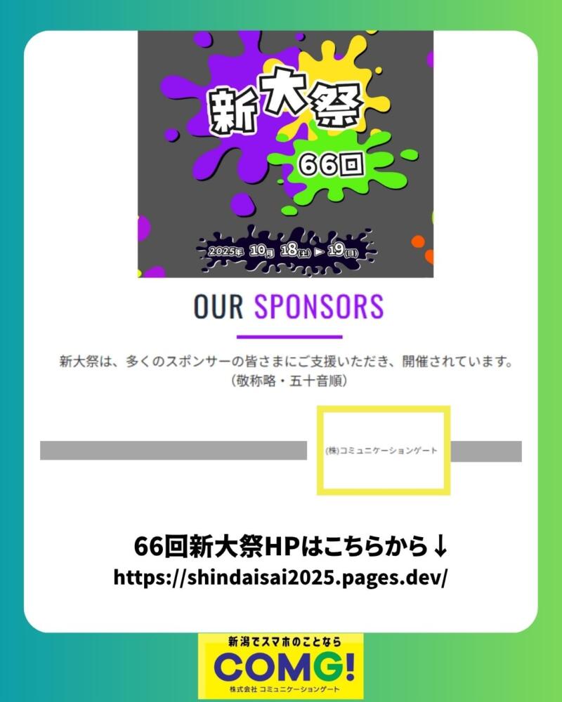このたび新潟大学の学園祭「新大祭」に広告協賛として参加いたします。